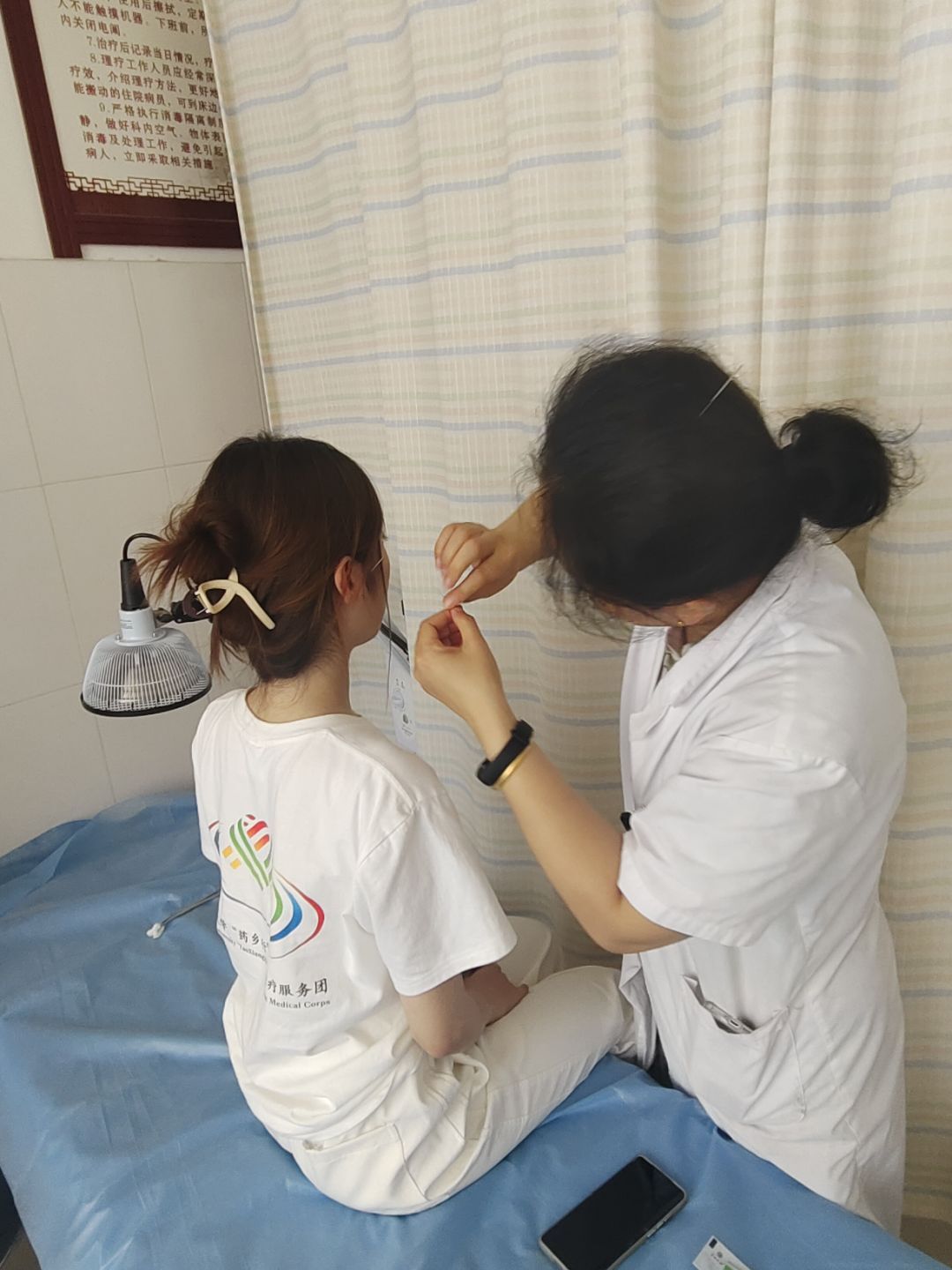 上午八點,團隊抵達金冢子鎮衛生院,在院長的統籌安排下分至內科、外科、中醫科、藥房等專項小組隨診學習。成員全程觀摩接診全流程,從初診問詢到方案制定,深入學習規范化診療與溝通技巧,深切體會基層醫者的專業能力與人文關懷。結合鄉村健康需求,隊員與醫師聚焦本地流行病防治、中醫藥基層應用模式、“藥食同源”開發等議題研討。醫師們分享的臨床經驗,為團隊提供了珍貴的基層醫療實踐參考。隨后,在陳醫生、高醫生帶領下,我實踐隊參觀中醫藥展館。從針灸器具原理到中藥炮制技術,從中藥房藥材辨識到藥房中西藥存放規范,再到中草藥園的采摘晾曬技巧,隊員們在互動中深化了對中醫藥的理解。