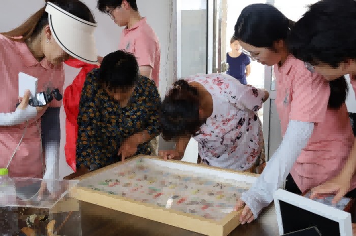 夜幕降臨,羊里街道居民廣場的燈光誘捕裝置成為最吸睛的“科學(xué)展臺”。團(tuán)隊(duì)成員通過現(xiàn)場捕捉昆蟲和展示昆蟲標(biāo)本的方式,向居民們普及昆蟲知識,生動講解了昆蟲與生態(tài)環(huán)境之間的關(guān)聯(lián),在互動體驗(yàn)中強(qiáng)化“科學(xué)使用生物農(nóng)藥”的環(huán)保意識,讓綠色發(fā)展理念如星光般照亮鄉(xiāng)村夜空。