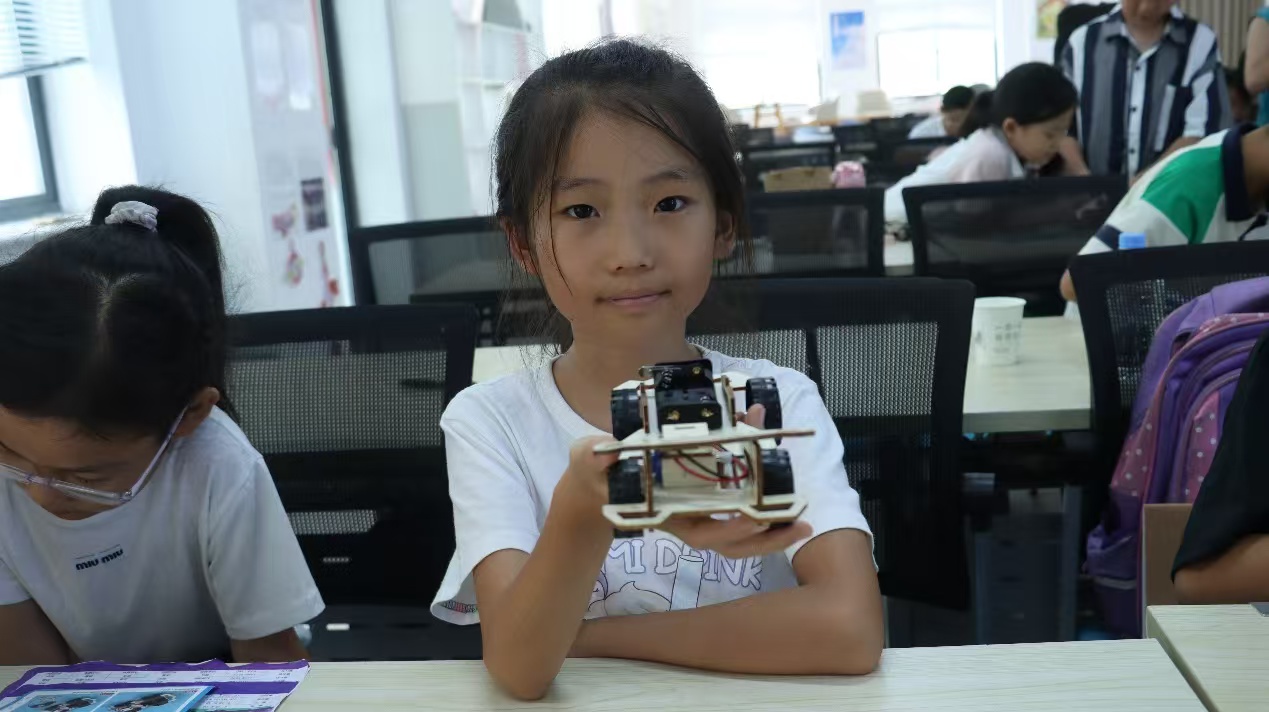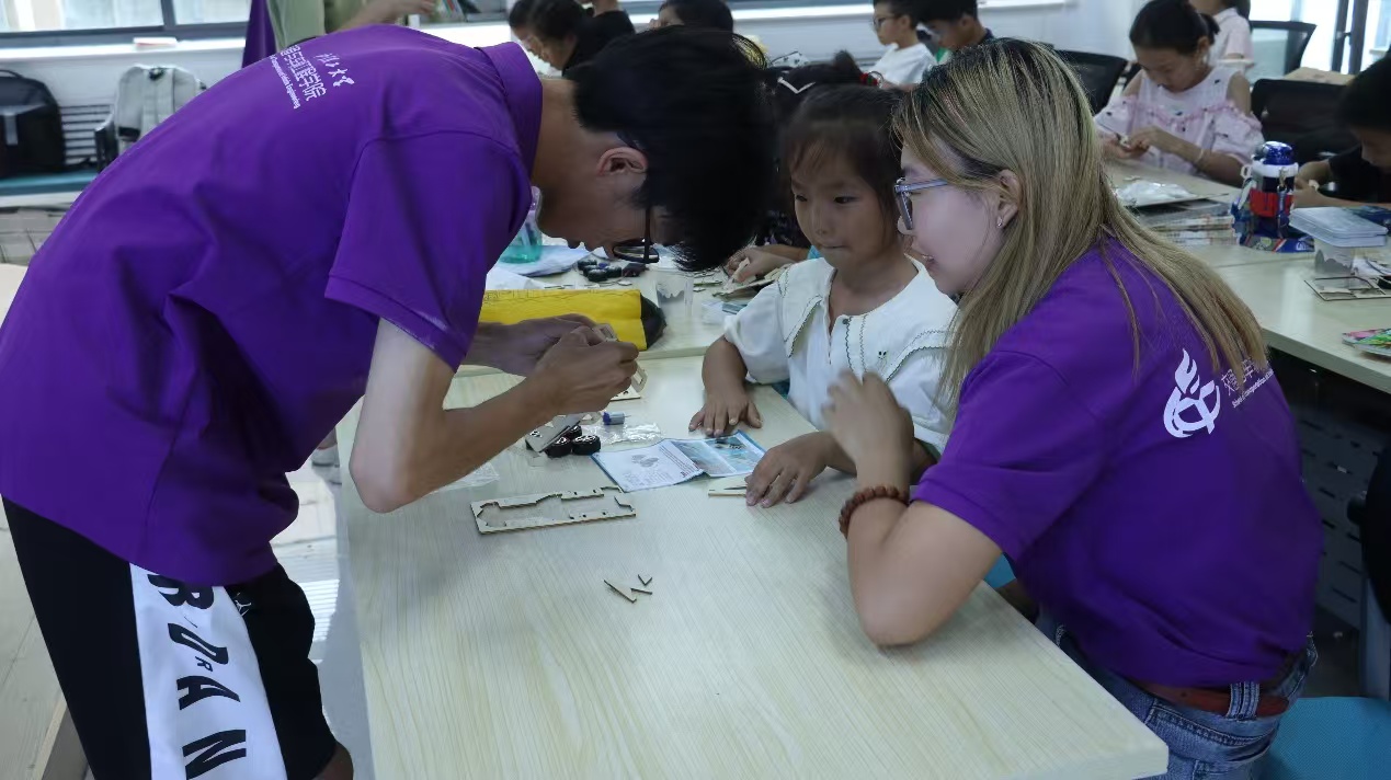 “荷風載笑語”是現場最生動的寫照。閱覽室外夏荷飄香,閱覽室內笑語盈盈。當孩子們親手組裝的小車成功在地面上跑動起來時,成功的喜悅和自豪感洋溢在每個人的臉上。這不僅是一堂手工課,更是一次夢想的播種。通過親手“造車”,孩子們直觀感受到了機械的魅力,鍛煉了動手能力、空間思維和解決問題的能力。同時,“圓夢”實踐團成員也在與孩子們的互動中深化了對專業知識的理解,提升了溝通與組織能力,踐行了服務社會、奉獻青春的實踐精神。