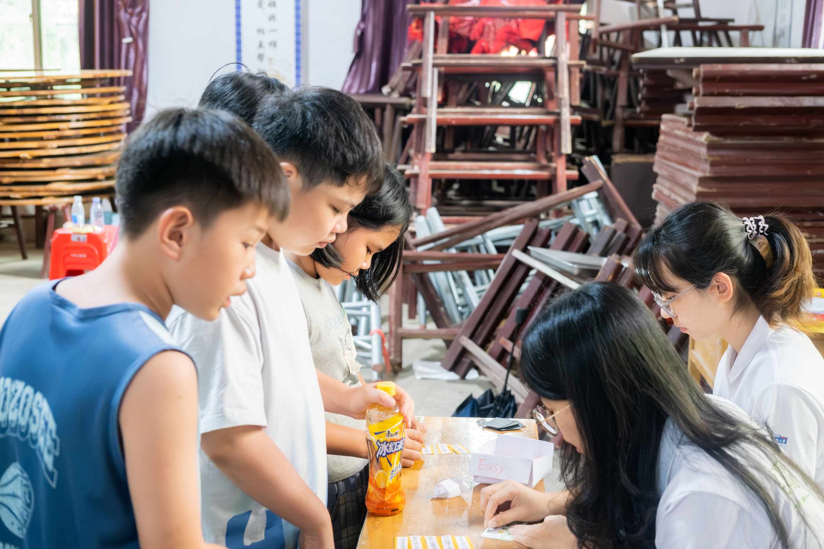 學生們進行傳聲挑戰