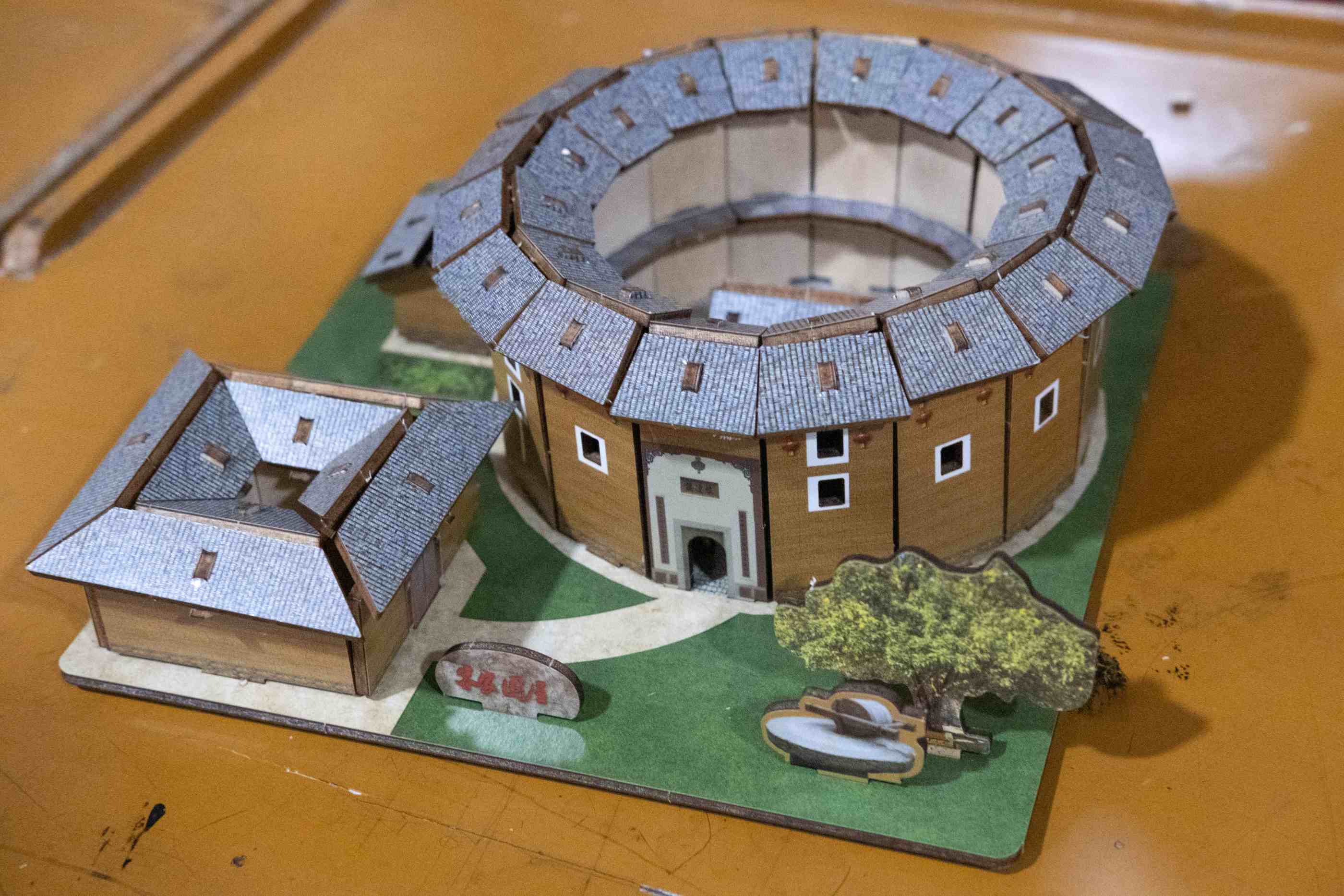 學生們合作拼接圍屋模型