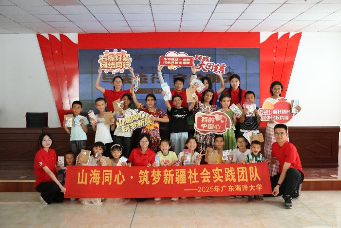 7月14日上午,阿圖什市吾斯塘路社區(qū)黨群服務(wù)中心內(nèi)陽光煦暖、掌聲頻傳。廣東海洋大學“山海同心 筑夢新疆”社會實踐團與20余名返鄉(xiāng)大學生、中小學生齊聚一堂,開展“山海同心共成長,粵疆青年暢未來”主題交流活動。活動采用分層設(shè)計:實踐團成員與返鄉(xiāng)大學生開展深度座談,同時為中小學生開設(shè)普法課堂——尊重年齡差異,實現(xiàn)內(nèi)容互補,讓每一個群體的聲音都被傾聽。