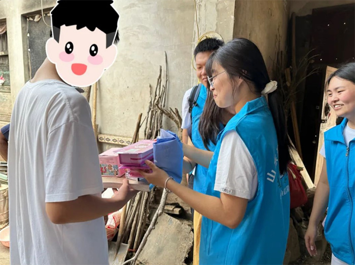 當天上午,實踐團成員分組前往仿山鎮(zhèn)多個村莊,走進留守兒童的家中,為他們送上精心準備的書包、文具、練習本等學習用品,以及米、面、油等生活必需品。每到一戶,隊員們都會與孩子及其監(jiān)護人細心交談,詳細了解孩子的學習情況、家庭生活狀況以及面臨的困難,并鼓勵孩子們保持積極樂觀的心態(tài),努力學習,勇敢追求夢想。