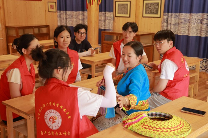 談及傳承現(xiàn)狀,劉貓妹坦言主要面臨兩大挑戰(zhàn):其一,盡管花瑤女性普遍學(xué)習(xí)挑花技藝,傳承譜系未斷,但傳承人年齡結(jié)構(gòu)失衡,年輕力量尤為匱乏;其二,傳承群體雖具備一定主動(dòng)性,但對(duì)挑花技藝所承載的深厚文化內(nèi)涵普遍認(rèn)知不足。針對(duì)這一情況,實(shí)踐團(tuán)建議當(dāng)?shù)剡M(jìn)一步強(qiáng)化“花瑤挑花”作為國(guó)家級(jí)非物質(zhì)文化遺產(chǎn)的宣傳普及,深化社區(qū)尤其是年輕一代對(duì)自身文化獨(dú)特價(jià)值的理解,從而增強(qiáng)文化自信與傳承的內(nèi)生動(dòng)力。