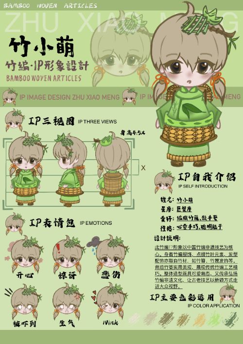實踐隊緊扣“以竹代塑”戰略導向,依托專業優勢創新打造“創竹·煥生”品牌項目。實踐聚焦文化傳播傳承、綠色時尚產品開發、生態包裝設計三大實踐方向:通過提煉藍田竹編非遺元素,創新研發萌態IP形象及竹原纖維文創衍生品,助力傳統文化活態傳承;探索竹編技藝與竹原纖維面料的創新融合,設計兼具實用性與市場潛力的環保包袋及服飾配件,引領綠色消費理念;將傳統竹編智慧轉化為現代設計語言,為安溪茶葉、柿餅等特色農產品量身打造可降解、高辨識度的環保包裝解決方案,切實響應政策并賦能地方產業綠色發展。在品牌構建中,隊員們錘煉了專業能力,深化了綠色擔當,以實際行動踐行了青年服務國家發展的時代使命。