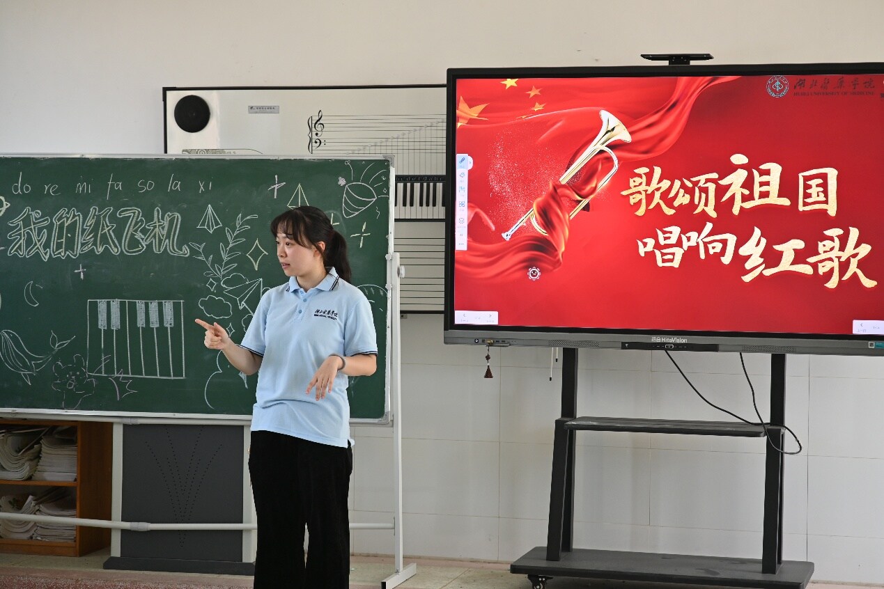 圖為 老師正在帶領孩子們歌頌紅色歌曲——“我和我的祖國” 陳立志 農姚 攝