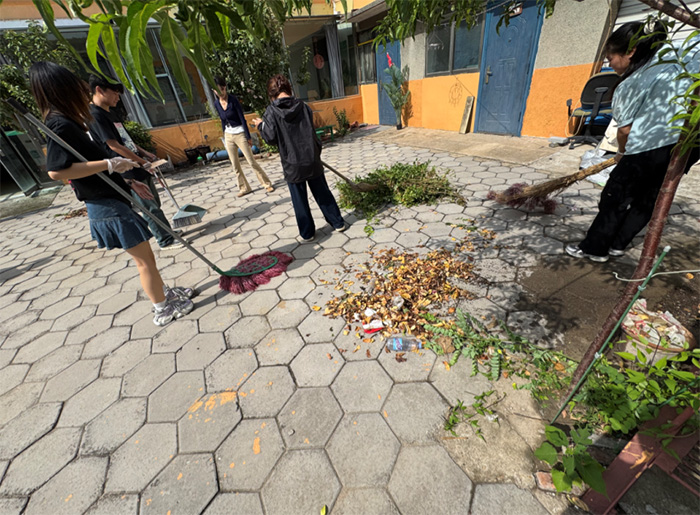 圖為頤心筑夢小隊在為養老院打掃院子。趙宇琪 供圖