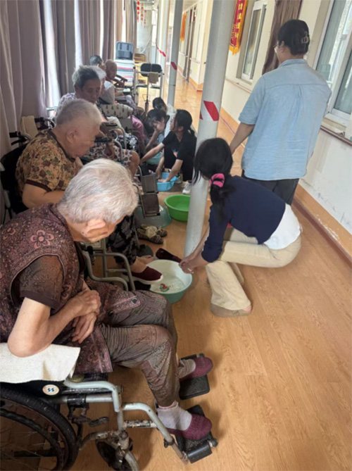 圖為頤心筑夢小隊在為老人們洗腳。王博 供圖