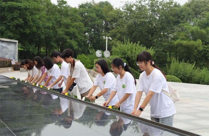 7月3日:緬懷革命英雄 實踐團隊來到成都市烈士陵園開展祭奠活動。在莊嚴肅穆的烈士紀念碑前,隊員們敬獻鮮花、集體默哀。無名烈士墓區前,全體成員深深鞠躬,向為革命犧牲的無名英雄致敬。“雖然不知道他們的名字,但他們的精神永遠激勵著我們。”隊員蔡孟君表示。