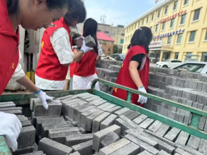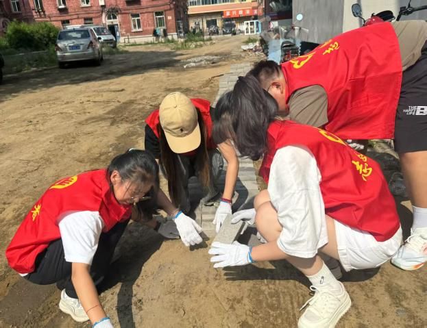 7月4日的下午,在新城社區的老居民樓,黑龍江東方學院高分子材料與工程專業的11名學子就已帶著工具集合完畢。這支由大學生組成的“心系黨中央志愿服務隊”,懷揣著為基層辦實事的熱忱,開啟了為期半天的暑期社會實踐活動——為老舊小區鋪設便民路,解決老人們雨天出行的“心頭難”。