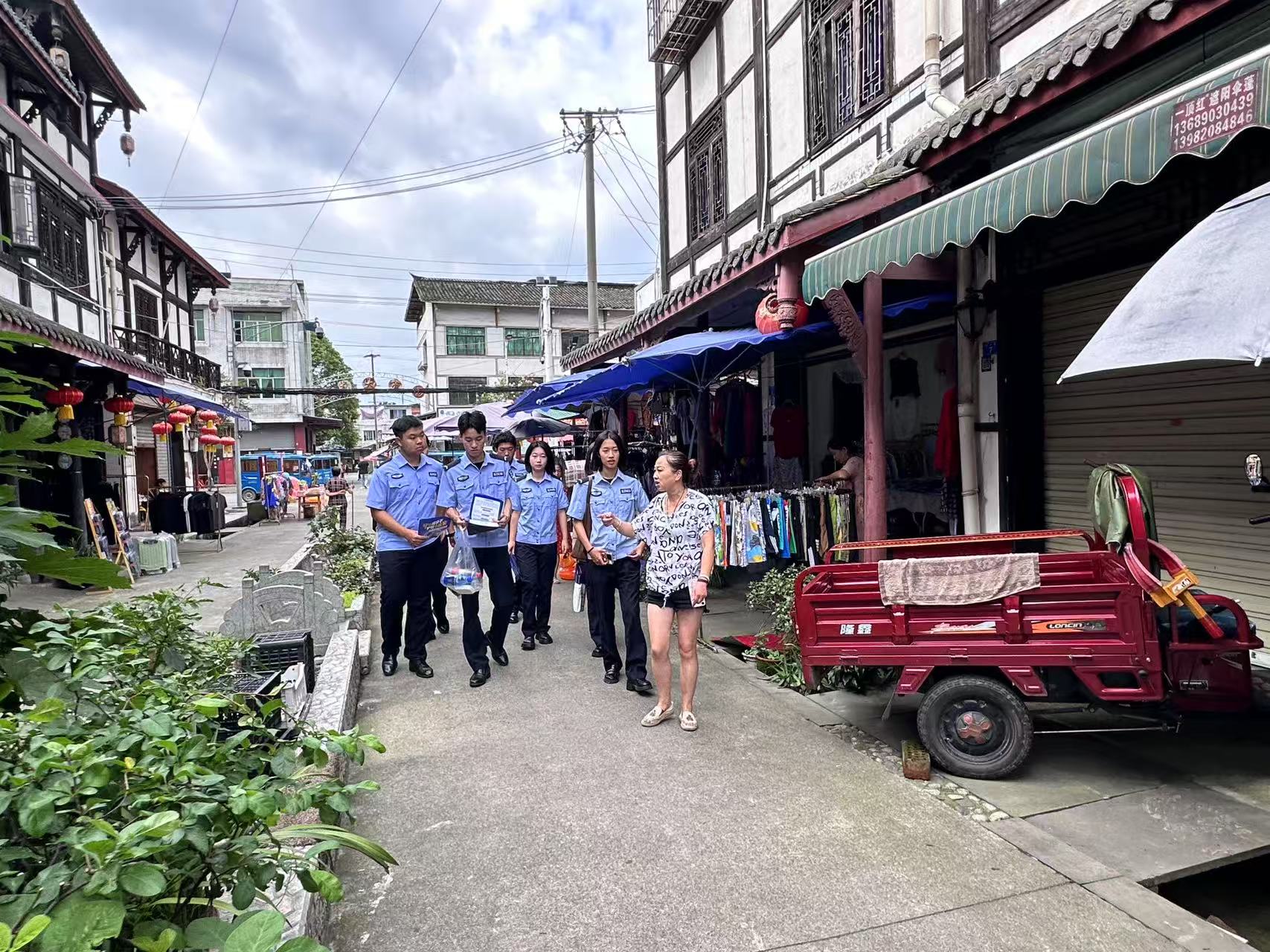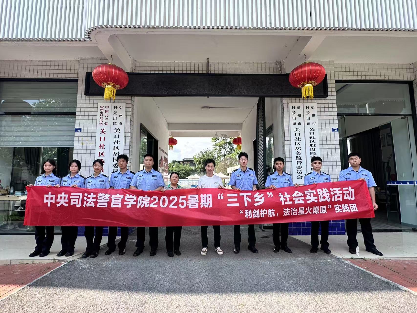 7月20日中央司法警官學院“利劍護航,法治星火燎原”團隊暑期在彭州市關口社區開展普法宣傳活動。