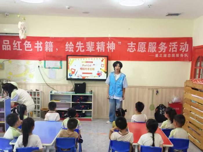 為深入貫徹國家關(guān)于青少年閱讀的相關(guān)政策,響應(yīng)《全民閱讀促進(jìn)條例》中培養(yǎng)未成年人閱讀興趣和愛國情懷的要求,幫助小朋友們深入了解革命先輩的奮斗歷程,傳承紅色文化基因 。6月30日,化學(xué)化工學(xué)院星之源志愿服務(wù)隊(duì)走進(jìn)聊城市東昌府區(qū)翰林苑幼兒園,成功舉辦“品紅色書籍,繪先輩精神”志愿服務(wù)活動;顒又荚谕ㄟ^寓教于樂的形式,將紅色文化與閱讀推廣相結(jié)合,在小朋友們心中種下愛國的種子。