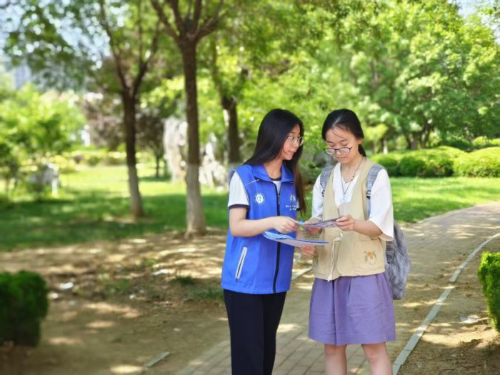 (圖為實踐隊成員對山東工商學院同學進行AI防詐宣傳 “法盾防詐”實踐隊 闞玲 供圖)