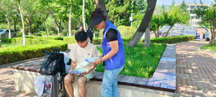 實踐隊于7月8日下午到達魯東大學,在校內圖書館、教學樓、餐廳等地開展調研活動。實踐隊成員向在校學生發放AI詐騙主題調查問卷,聚焦學生對 AI 技術的接觸頻率、自己及身邊人是否被AI詐騙過、對詐騙手段的認知程度等問題,收集同學們的情況反饋。實踐隊成員反復提醒同學們,不要盲目相信手機信息,要對電子信息保持警惕,高度警惕AI詐騙。