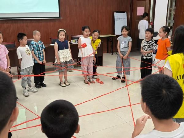 小桔燈社工為孩子們搭起一座“韌性成長(zhǎng)工作坊”。開(kāi)場(chǎng)的“人際網(wǎng)”把毛線拋成彩虹橋,陌生的小手瞬間被連成整體;共繪隊(duì)旗再添一筆,集體歸屬感立刻上色。紅十字心理救援隊(duì)老師接力,用“閉眼撕紙”“傳聲電報(bào)”讓孩子親手拆穿“我以為你懂”的誤會(huì)。隨后的“專注力闖關(guān)”把舒爾特方格、反口令游戲串成歡樂(lè)賽道,注意力在笑聲里升級(jí)。最后,書(shū)香角變身“故事實(shí)驗(yàn)室”,戴上面具接力劇情,邏輯與腦洞一起起飛。“心理團(tuán)輔”課堂呵護(hù)孩子們的健康成長(zhǎng),為孩子們的暑假增添了不少樂(lè)趣,注意力得到提高,幫助他們結(jié)識(shí)更多朋友。