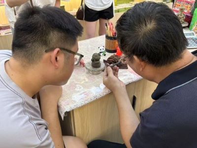 7月20日下午,我們團隊來到了惠山古鎮繡嶂街74號泥砂藝匠泥人工作室,惠山泥人制作技藝傳承人吳國登師傅熱情地迎接了團隊,并帶領團隊參觀了工作室。工作室里擺放著各種各樣的泥人,其中有大阿福這類經典的惠山泥人形象,更有大熊貓、哪吒、敖丙這種新形象吸引著年輕人和小孩子的眼球。每一件作品都凝聚著吳師傅的心血與智慧,散發著濃郁的傳統手工藝的藝術氣息。吳師傅向團隊詳細介紹了惠山泥人的歷史淵源、發展脈絡以及獨特的制作工藝。原來,惠山泥人的制作工藝極為復雜,從選泥、制泥、捏塑、彩繪到開相,每一個環節都有著嚴格的要求和獨特的技巧。其中,“開相”更是惠山泥人的精髓所在,僅靠一支毛筆,吳師傅就能賦予泥人靈動的眼神和生動的表情,讓泥人瞬間“活”了起來。隨后,團隊的隊長提出想要親自上手體驗捏泥人,在吳師傅手把手的指導下,隊長逐漸上手起來,隊員們紛紛用手機記錄著這個時刻,即使隊長捏泥人的技術遠不及吳師傅,但是隊長還是全神貫注,沉浸在創作的樂趣中。