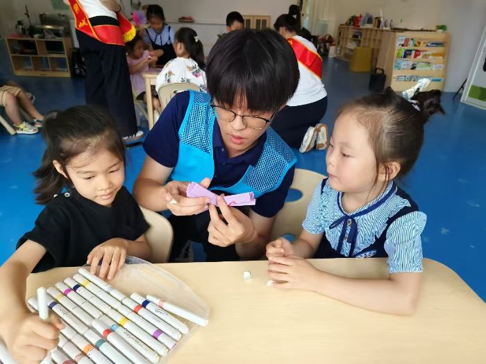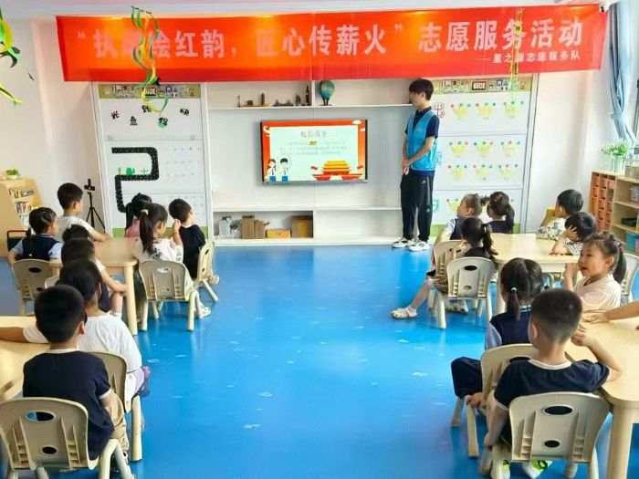 為深入貫徹習近平總書記關于“抓好青少年學習教育,讓紅色基因、革命薪火代代傳承”的重要指示精神,積極響應國家《全民閱讀“十四五”時期發展規劃》和教育部《全國青少年學生讀書行動實施方案》關于深化青少年閱讀活動、傳承中華優秀傳統文化和革命文化的部署要求,6月30日,化學化工學院星之源志愿服務隊走進聊城市東昌府區孟達幼兒園,成功舉辦“折扇繪紅韻,書香潤童心”志愿服務活動。活動旨在通過“閱讀+手工”的沉浸式體驗,將紅色基因傳承、家國情懷培育與閱讀習慣養成有機結合,引導幼兒在書香墨韻中感悟奮斗精神,厚植愛國根基。