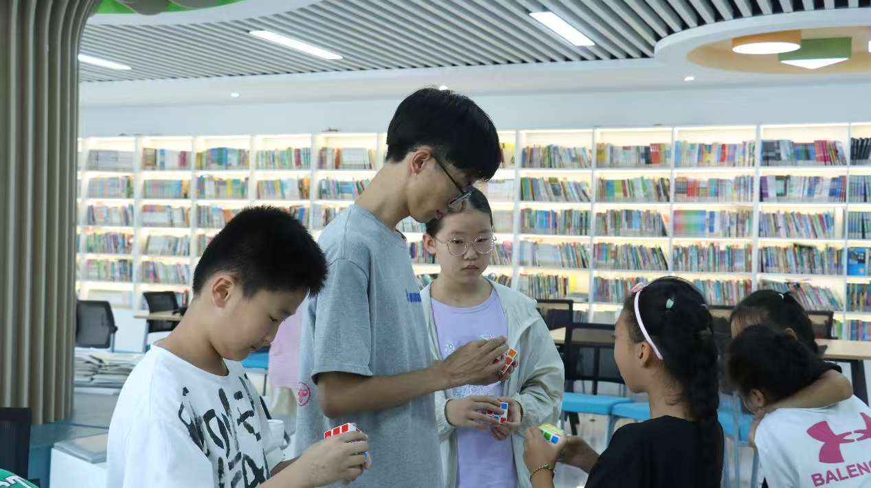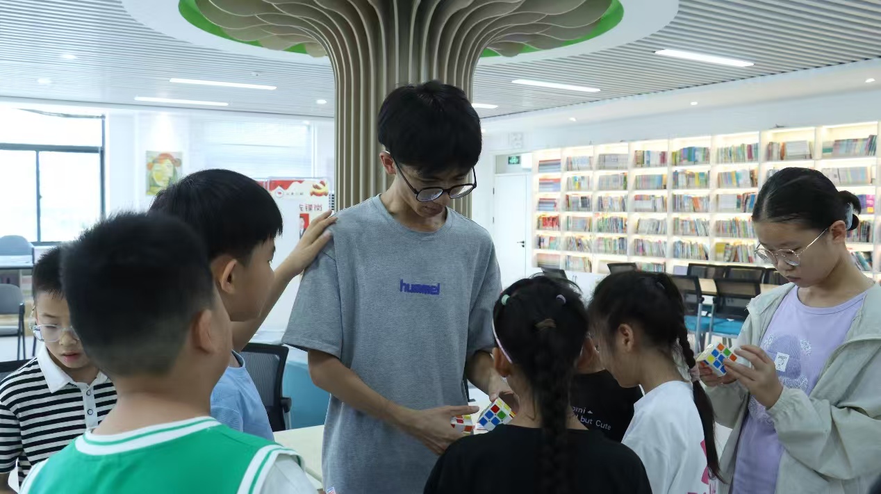 7 月 25日清晨,荷韻小學(xué)的活動(dòng)室里早已洋溢著輕快的氣息。陽(yáng)光透過(guò)玻璃窗灑在整齊擺放的課桌上,30 個(gè)三階魔方在晨光中折射出繽紛的色彩 ——“圓夢(mèng)” 實(shí)踐團(tuán)的老師們正忙著做最后的準(zhǔn)備,即將為孩子們開(kāi)啟一場(chǎng)奇妙的魔方探索之旅。為了讓孩子們?cè)谑罴倮锝佑|到有趣的智力運(yùn)動(dòng),同時(shí)培養(yǎng)空間思維與手眼協(xié)調(diào)能力,老師提前一周就開(kāi)始設(shè)計(jì)教學(xué)方案,從魔方的挑選到教學(xué)步驟的拆解,每一個(gè)細(xì)節(jié)都反復(fù)打磨。