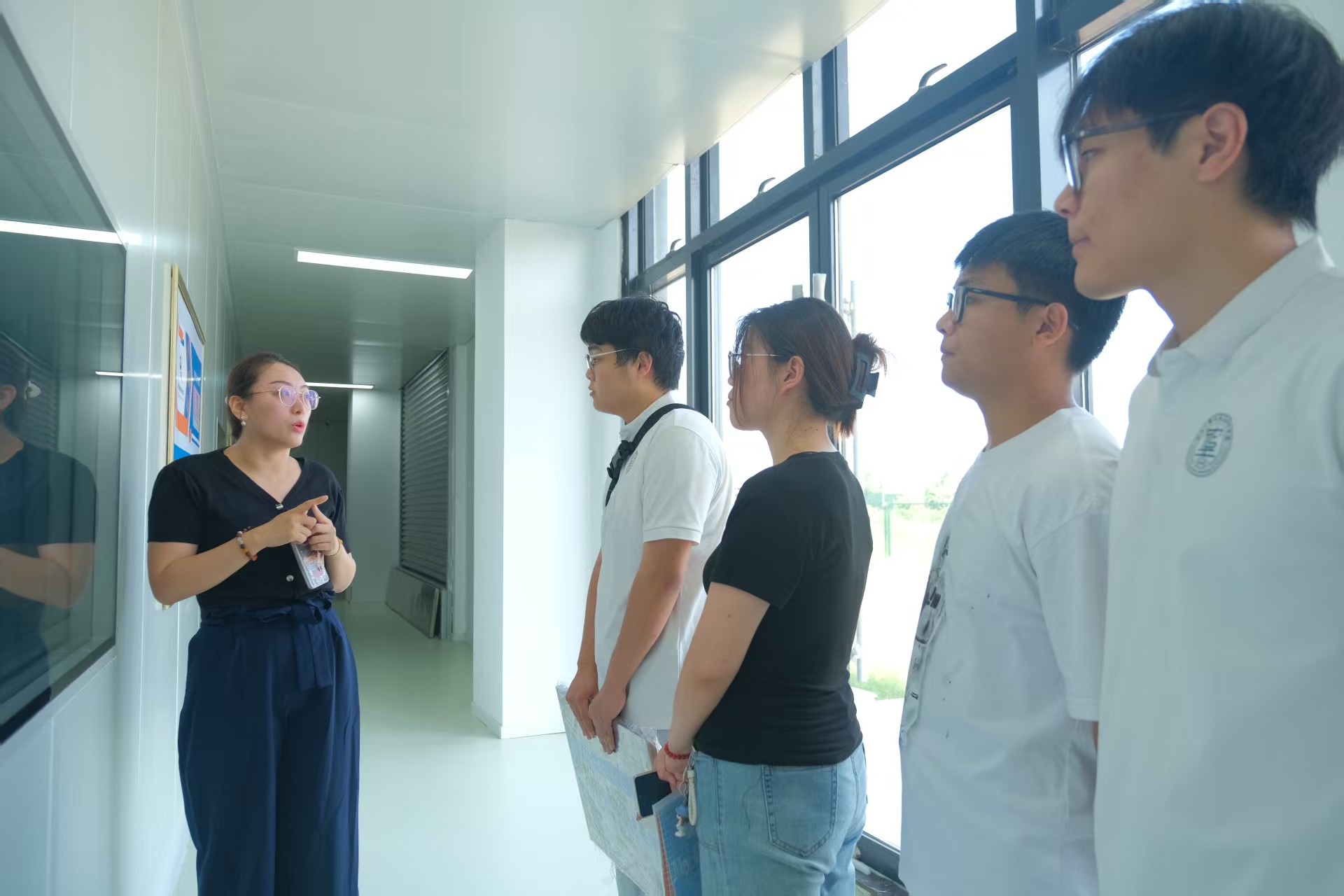 實踐團成員在企業講解員王雅琳的陪同下,實地探訪了九鼎生物的核心生產線。在益生飲品車間,成員們觀摩了從原料處理、無菌調配、瞬時滅菌到全自動灌裝的全流程,了解了企業通過實時監測pH值、活菌數和負壓無菌環境保障產品質量的關鍵技術。在壓片糖果生產線,高速壓片(產能達10萬片/小時)、薄膜包衣等環節及嚴格的“三檢”質量管控標準(檢測硬度、崩解度、有效成分含量)給成員們留下深刻印象。