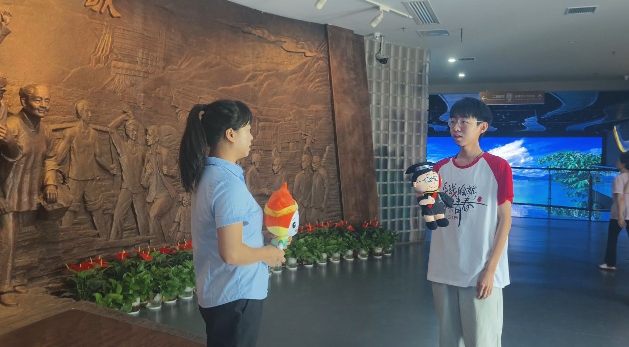 巧合的是,實踐團抵達東江移民博物館時,館內正熱鬧舉辦第二屆“紅領巾講解員”文化志愿服務活動。得知活動詳情后,實踐團成員當即與館內工作人員取得聯系,主動請纓加入志愿服務隊伍,以實際行動踐行移民精神中的奉獻擔當。活動現場,實踐團成員們有條不紊地向參與活動的小朋友們發放東江移民博物館的圖文資料。每一次遞出資料的動作,都像是在完成一次特殊的“精神接力”—— 將東江移民“舍家為國、艱苦創業”的動人故事,悄悄播撒進孩子們的心田;把“奉獻擔當、敢為人先”的精神火種,穩穩傳遞給新一代的青少年。這場意外的志愿服務,讓移民精神在代際傳遞中煥發新的生機,也讓實踐團的暑期實踐更添了一份薪火相傳的深意。