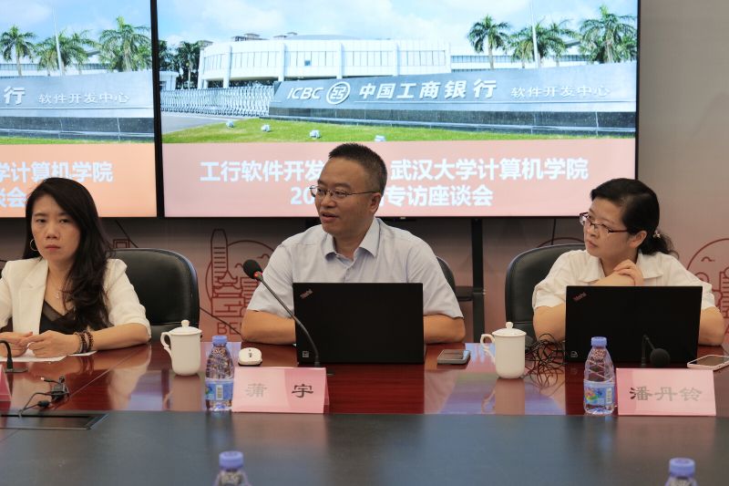 02,座談交流 工行軟件開發中心熱情招待,座談與會代表包括珠海中國工商銀行軟件開發中心專家林燕、人力資源部高級經理王芳、人力資源部經理鄧文杰,還有同為武大校友的人力資源部資深經理蒲宇,開發部門副總經理潘丹玲。