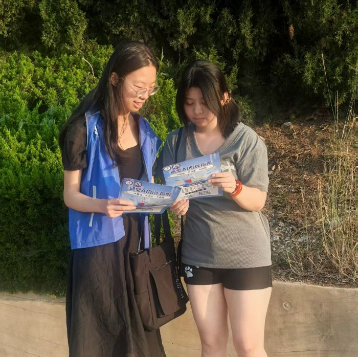 7月13日,實(shí)踐隊(duì)前往煙臺(tái)體育公園開展宣傳活動(dòng),實(shí)踐隊(duì)員們觀察到公園內(nèi)中老年鍛煉者和帶孩子的家長較多,這正是AI詐騙中冒充親屬緊急求助類騙局的重點(diǎn)目標(biāo)人群。隊(duì)員們有針對(duì)性地發(fā)放宣傳單,并用通俗易懂的語言解釋AI技術(shù)如何被不法分子用于偽造聲音和視頻,以此來提升群眾的AI詐騙防范意識(shí)。此番警示引起了許多市民的共鳴。不少市民主動(dòng)索要更多宣傳單,表示要帶回家給家人看看,并詳細(xì)詢問了設(shè)置緊急聯(lián)系人、下載反詐APP等具體防護(hù)措施,隊(duì)員們一一進(jìn)行耐心講解。