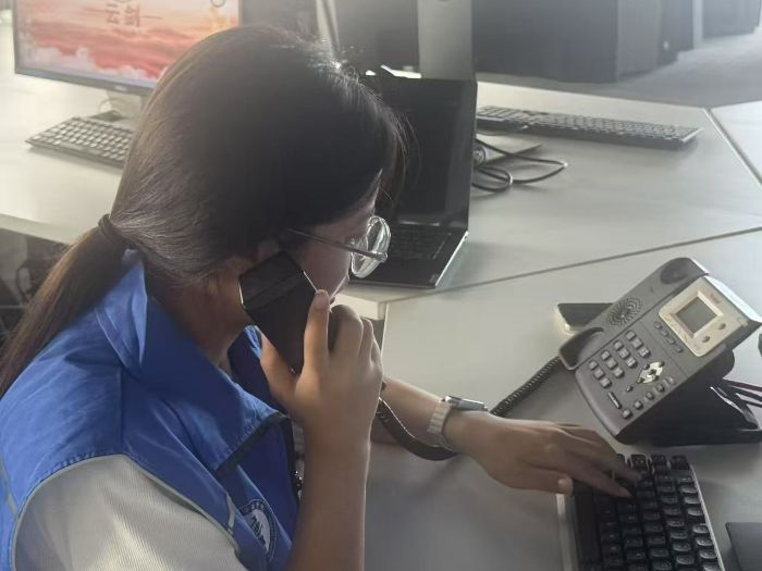 (圖為實踐隊成員在預警勸阻崗位接聽電話 “法盾防詐”實踐隊 胡雅淇 供圖)