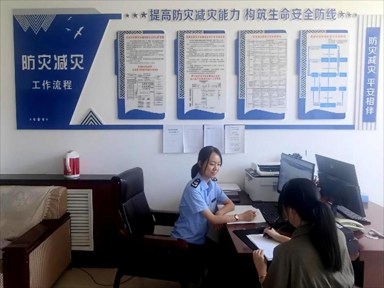 圖為團隊成員訪談甘州區應急管理局工作人員劉瑩 董筱晗攝