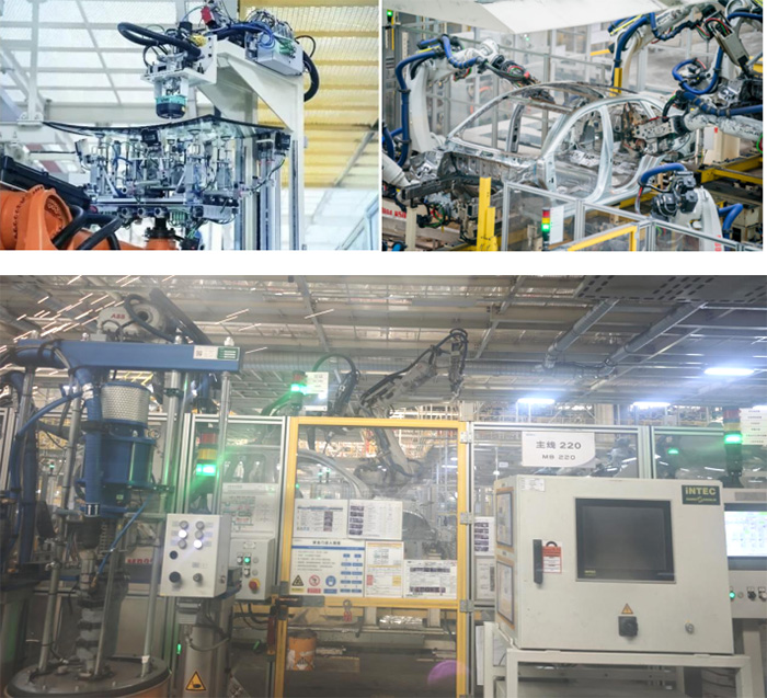 全封閉式涂裝車間采用了先進的智能噴涂系統,能根據不同車型和顏色需求,精準控制涂料的用量和噴涂軌跡,既保證了涂裝質量,又減少了資源浪費。36臺噴涂機器人進行"水性免中涂工藝"作業,實現全自動涂膠。實踐隊員了解到,涂裝車間主要承擔了車身防腐/密封、NVH(隔音降噪)、噴涂裝飾等任務。全車間2000多個工藝參數、150多個能耗參數、1000多個設備參數實現全自動實時監控。