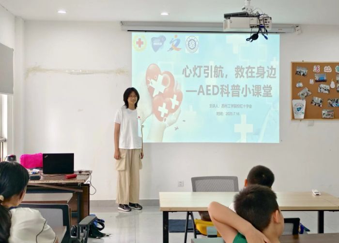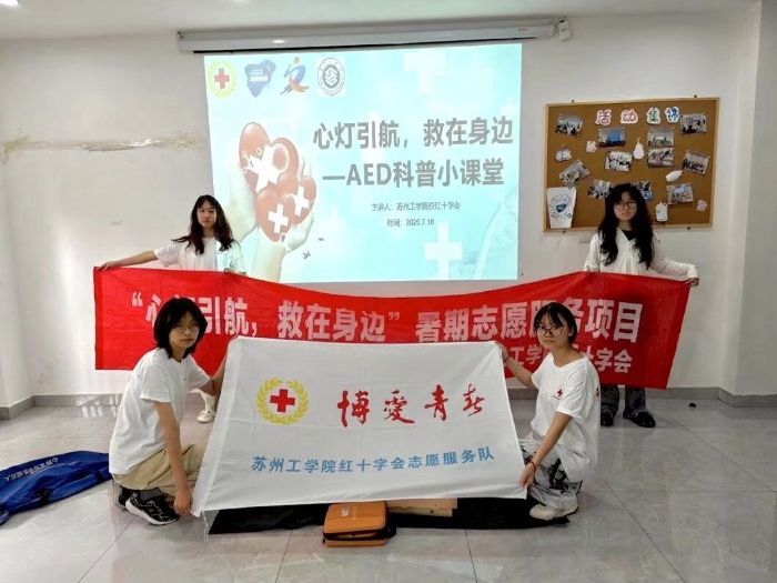 為持續(xù)推動“人人學(xué)急救、急救為人人”理念在基層社區(qū)落地生根,7月16日下午,蘇州工學(xué)院“博愛青春”暑期志愿服務(wù)項目小組走進常熟市天禧社區(qū),開展了一場以“AED使用知識”為主題的社區(qū)融合型宣講活動。