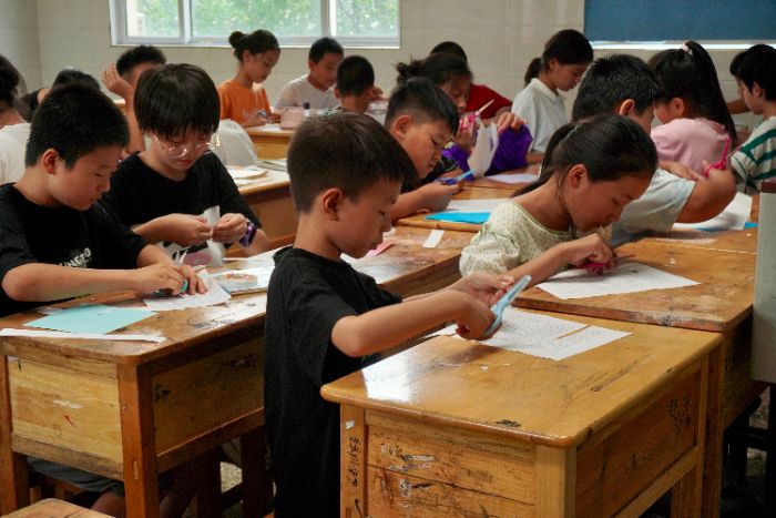 初見:稚語聲聲,播撒希望種子 支教團與孩子們的初見充滿溫馨。在首次見面課上,成員們引導孩子們在白板寫下姓名,鼓勵他們大膽介紹自己的愛好與夢想。從科學家、舞蹈家到教師、明星,孩子們用稚嫩的聲音描繪著心中的向往。這些純真的夢想如同初萌的嫩芽,蘊含著無限可能,也讓支教團成員深切感受到鄉村兒童對未來的憧憬與活力。相伴:課堂互動,見證雙向成長 在支教活動期間,團隊開展了多種多樣、精彩紛呈的課程活動,讓孩子們在實踐中不斷挑戰自我、發現所長。流沙畫課堂上,孩子們專注投入,或細細鋪展白砂,或凝視彩沙流動,或合作完成創作,指尖的默契如同無聲的樂章;拼貼詩課上,氛圍熱鬧活潑,孩子們反復排列詞句,積極分享佳作,純真質樸的表達比任何精心構思的文字都更動人。