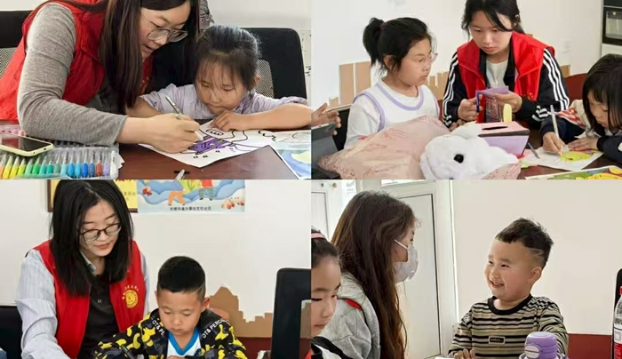 隨后,志愿者們把各式各樣的圖畫模板擺滿桌面,有的小朋友挑選自己喜歡的圖案,并在志愿者的耐心指導和陪伴下,認真地進行繪畫和填色;有的則在空白畫紙上隨心涂鴉,創(chuàng)造出獨一無二的藝術作品。繪畫過程中,小朋友與志愿者積極交流,分享著對色彩和圖案的獨特想法,在溝通互動中逐漸學會清晰表達自己的需求和感受。