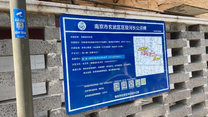 圖為內秦淮河北段河長制公示牌。潘予涵攝