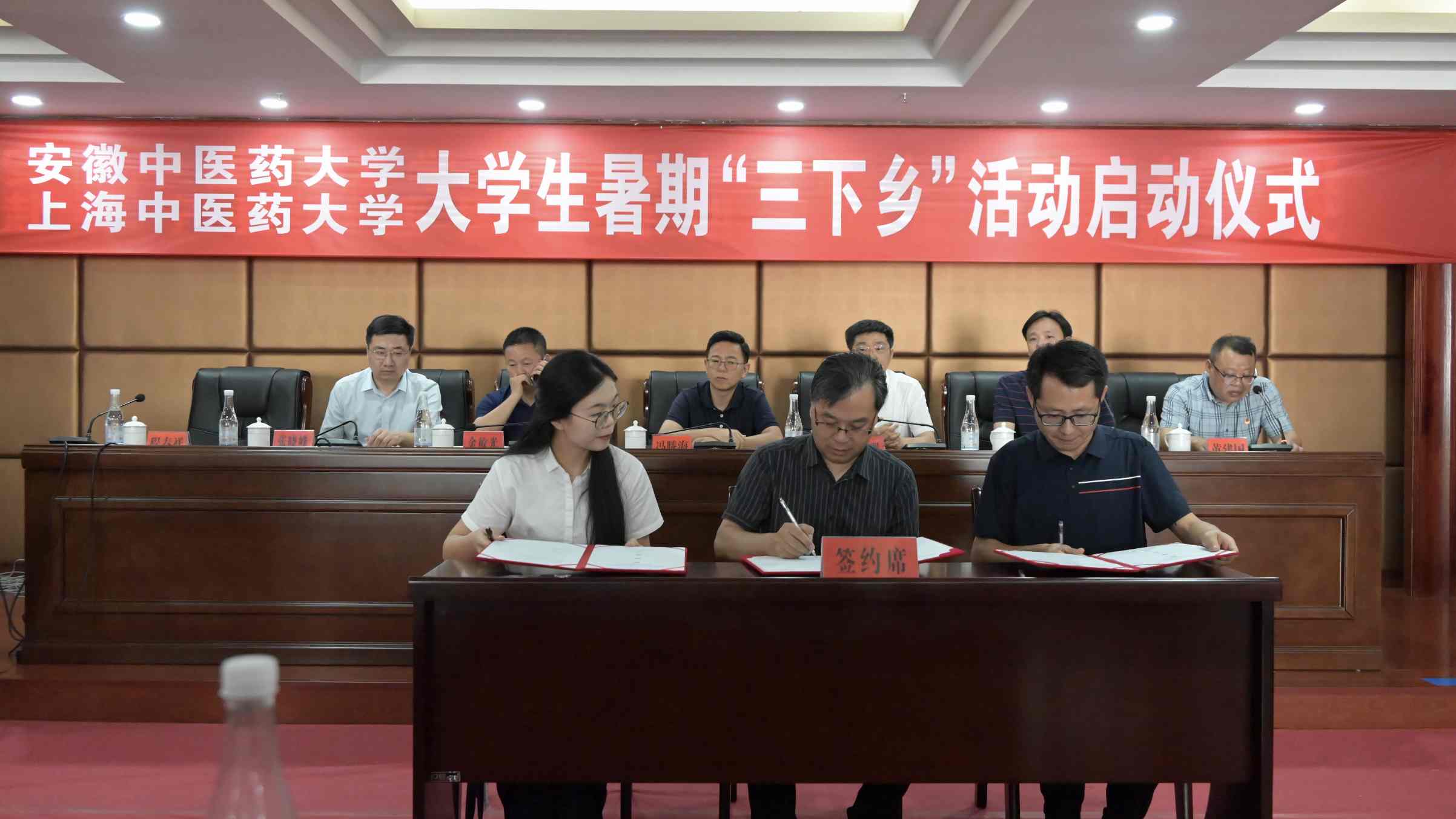 儀式迎來關鍵節點——休寧縣中醫醫院領導與安徽中醫藥大學、上海中醫藥大學代表鄭重簽署地校合作協議,標志著三方在人才培養、學術交流、服務基層等領域合作進入制度化新階段。