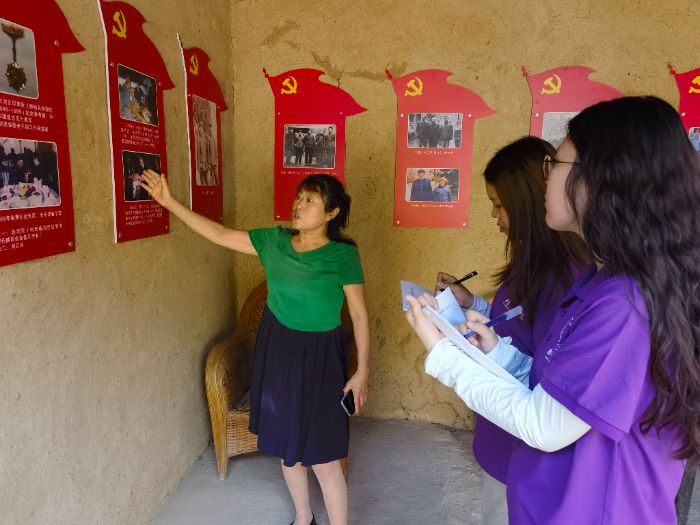 7月23日,實(shí)踐隊(duì)來到交斜村紅色會(huì)客廳。交斜村支部書記翟新民熱情接待并擔(dān)任講解員,結(jié)合會(huì)客廳展館內(nèi)的歷史圖片、文獻(xiàn)資料和實(shí)物展品,翟書記講述了交斜村在革命時(shí)期的紅色歷史脈絡(luò)與英雄故事,讓隊(duì)員們?nèi)媪私猱?dāng)?shù)丶t色文化資源。參觀結(jié)束后,隊(duì)員們對(duì)支部書記進(jìn)行深入訪談,通過訪談,隊(duì)員們了解到交斜村完好保存著陜西省唯一一個(gè)抗日陣亡將士紀(jì)念碑,為了充分盤活這一紅色資源,交斜村建設(shè)了紅色會(huì)客廳,并將各革命時(shí)期的人物匯集成《紅色交斜圖片錄》供來訪研學(xué)團(tuán)隊(duì)和當(dāng)?shù)卮迕耖喿x,以此涵養(yǎng)文明鄉(xiāng)風(fēng)、吸引企業(yè)投資推動(dòng)產(chǎn)業(yè)發(fā)展等。交斜村的具體實(shí)踐與顯著成效,為實(shí)踐團(tuán)隊(duì)提供了研究紅色文化賦能鄉(xiāng)村振興的鮮活案例。