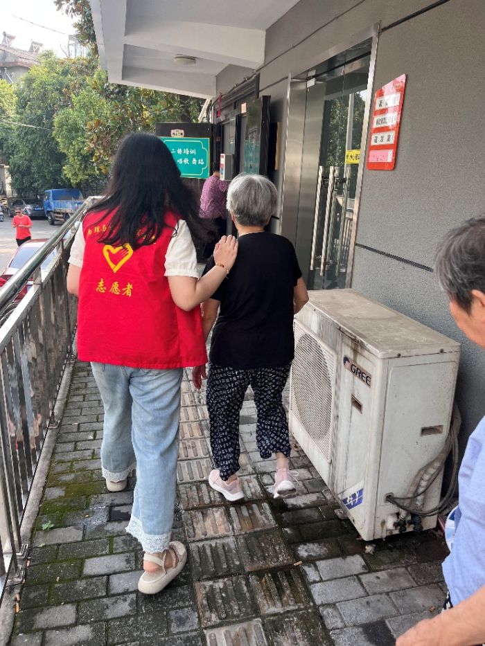 圖為隊員王雨欣攙扶老人上樓 孫琳供圖