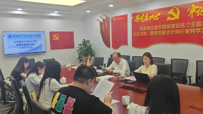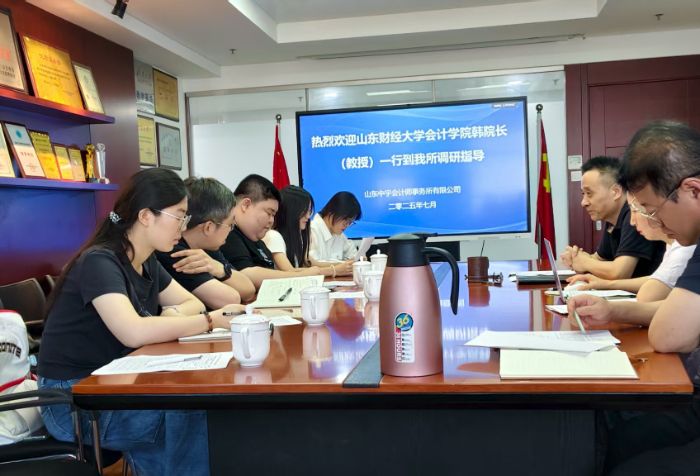 7月3號上午,在韓躍老師帶領(lǐng)下,團(tuán)隊前往山東中宇會計師事務(wù)所有限公司進(jìn)行調(diào)研,楊所長、王總與蓋老師熱情招待了調(diào)研團(tuán)隊。