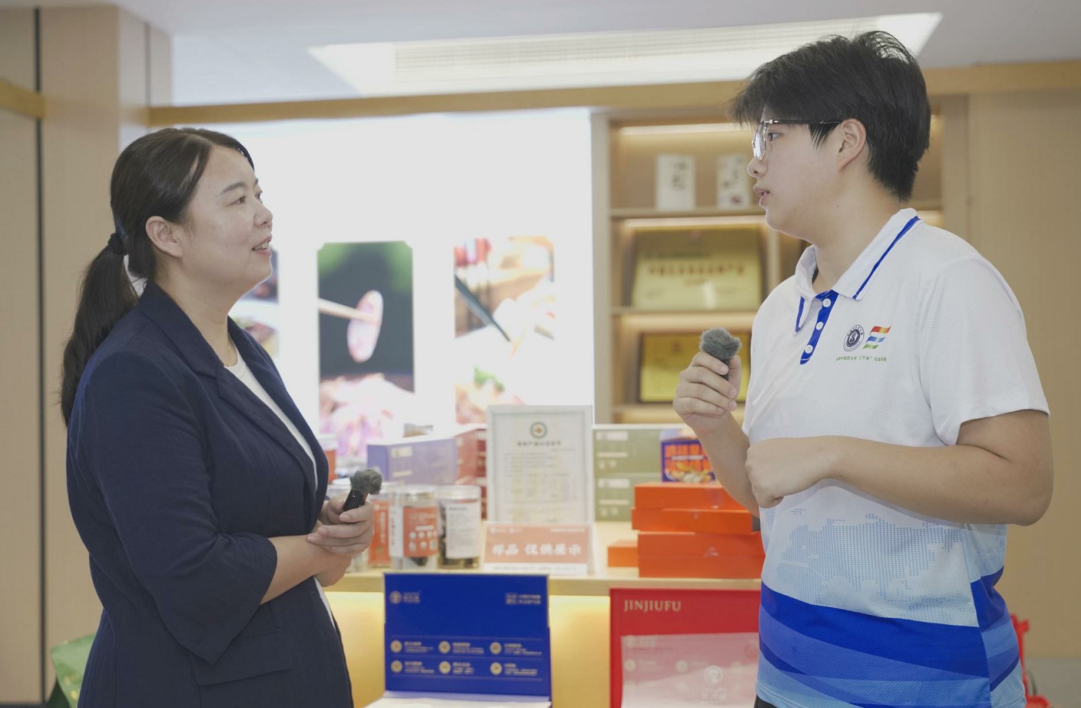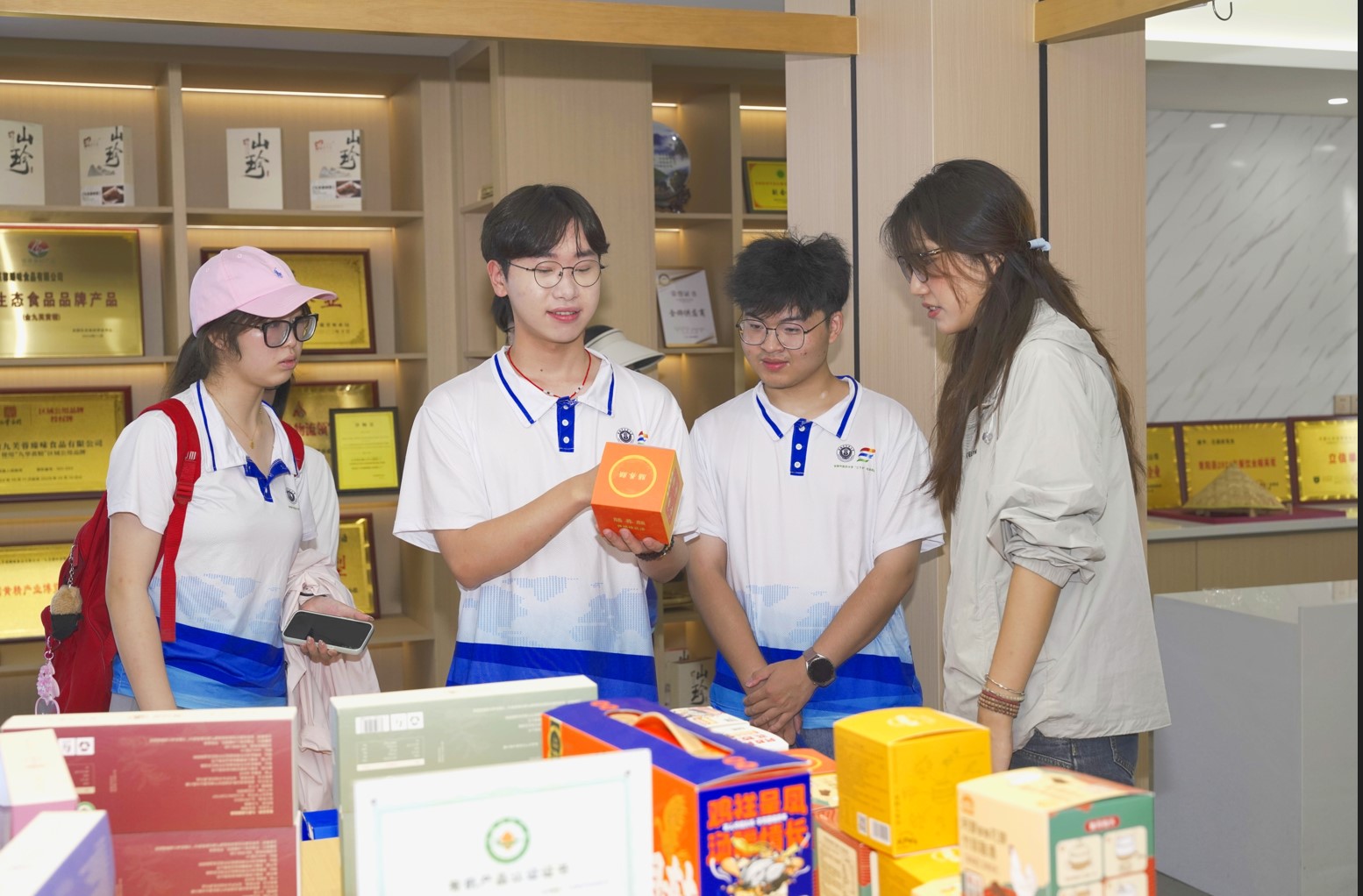 圖為實踐團(tuán)成員們了解九芙蓉臻味食品有限公司的黃精茶、黃精芝麻丸等黃精食品 張振宇供圖