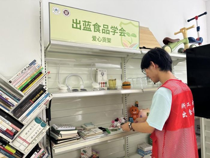 活動的最后一站,是西湖善糧公社古蕩分社的愛心貨架區。在西湖善糧公社項目負責人陳老師與古蕩分社負責人唐老師的帶領下,隊員們與孩子們一同參觀站點,親手整理捐贈的二手物資。“出藍食品學會愛心貨架”上疊放著“食光予你,善糧煥物”主題系列公益活動所收集到的各類物資,這些物資也必將在需要的人手中煥發新的價值。