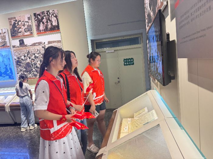 首站在東北解放紀(jì)念碑前,進(jìn)行了動(dòng)員儀式。第二站走進(jìn)中共滿洲省委舊址紀(jì)念館,通過(guò)觀看泛黃的老照片、銹跡斑斑的舊物件,深入了解了那段風(fēng)雨兼程的歲月和英雄人物事跡。在參觀過(guò)程中,講解員指尖劃過(guò)一張張歷史圖景,每一個(gè)細(xì)節(jié)都在訴說(shuō)著“國(guó)家”二字背后的擔(dān)當(dāng)與奉獻(xiàn)。這一刻他們忽然明白,愛國(guó)從不是遙遠(yuǎn)的敘事,它是先輩用熱血書寫的答卷,是今人用行動(dòng)續(xù)寫的篇章——而他們腳下的路,正是傳承這份精神的開始。