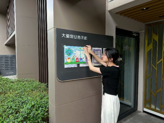 線下活動則以“繪制宣傳海報”為載體。實踐隊妙筆生花繪制創(chuàng)意海報,將自己對垃圾分類的理解、對綠色家園的向往融入畫作之中。以海報的形式宣傳不僅展現(xiàn)了青年的藝術才華,更成為了傳播垃圾分類理念的“移動宣傳欄”,在社區(qū)展示后,引發(fā)了廣泛關注和共鳴。