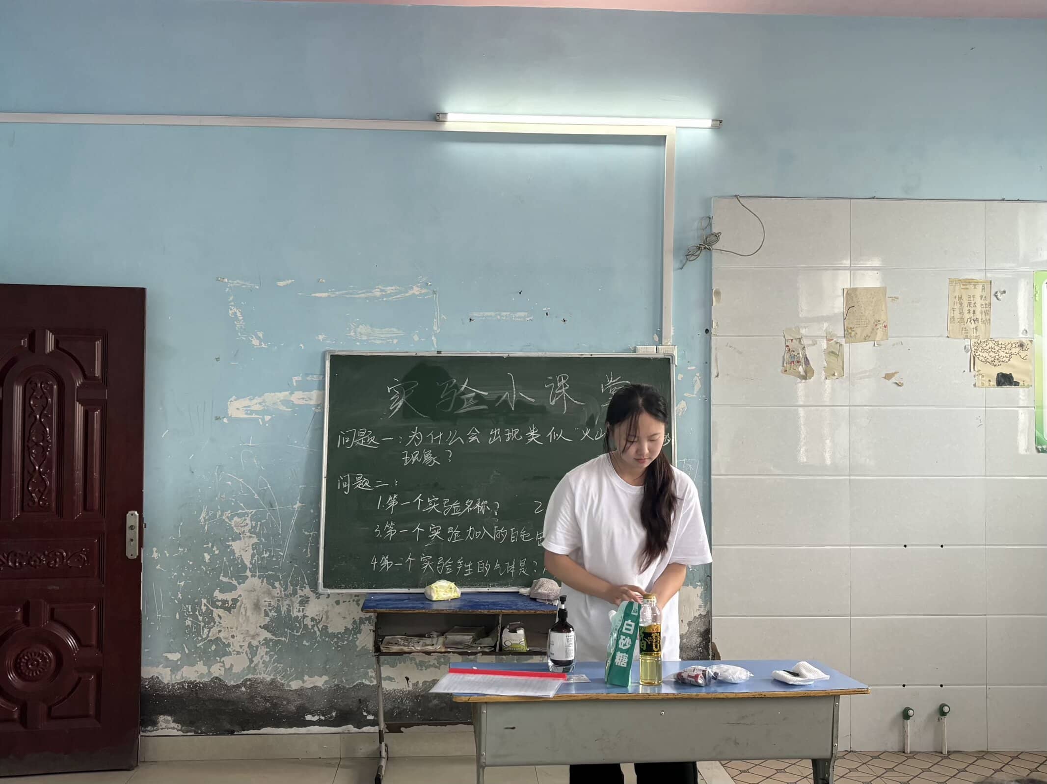 當支教隊伍的隊長進行“夢想起航”開班介紹時,迎接隊員們的是孩子們好奇又略帶羞澀的目光。斑駁的墻壁、簡陋的課桌椅、但擦得發亮的黑板,樸質的一切構成了隊員們對這里的第一印象。