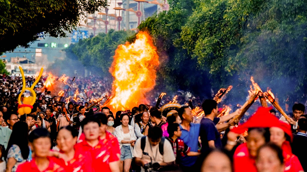 火把節期間,實踐團深度融入活動。在火把巡游、篝火打歌等環節,用鏡頭記錄三弦演奏、蘆笙表演等非遺,與群眾交流時,反復介紹茶葉、蠶繭、松油的生態特色與產業價值,將火把節的“人氣”轉化為農特產品的“關注量”。借著火把節的傳播熱度,成功吸引游客主動詢問農特產品購買渠道,使火把節成為產業發展的有力助推器。