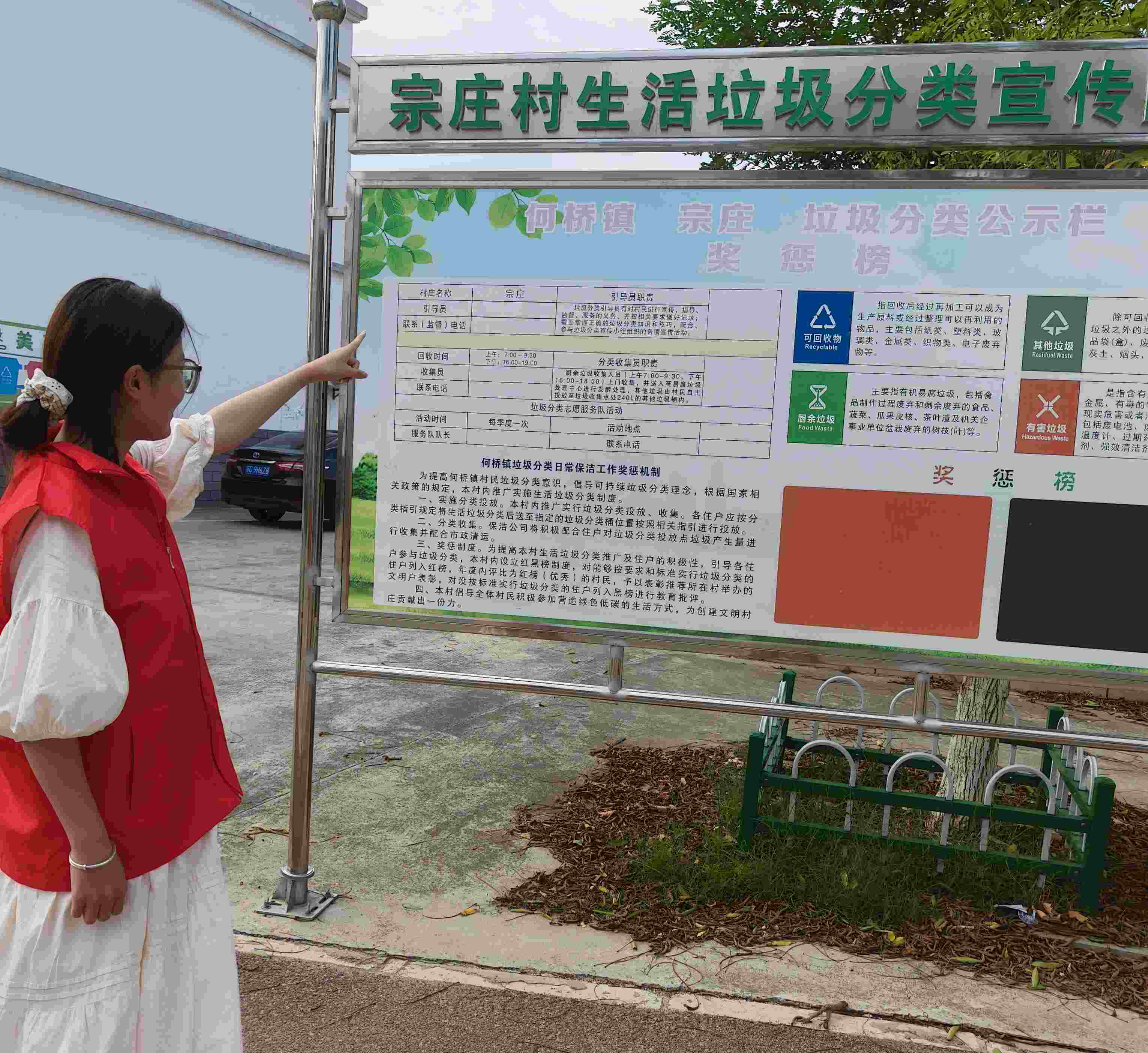 與此同時,徐州市銅山區何橋鎮的社區行動同步推進。青年志愿者與社區工作者組成“分類宣傳隊”,依托“宗莊村生活垃圾分類宣傳欄”,向居民詳解分類政策與獎懲機制。志愿者們走街串戶,結合“改善環境、節約資源”的實際案例,指導居民正確分類投放,并鼓勵大家從“隨手分”做起,讓垃圾分類成為社區生活日常。宣傳欄里的“獎懲榜”,更以正向激勵與反向約束,推動居民主動參與,形成“分類我先行”的社區風尚。