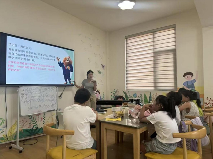 同時,“校園安全飛行棋”把《未成年人保護法》條文變成跳格游戲:遇到校園欺凌后退三格、正確使用網絡前進兩格、向老師求助可“直達安全屋”。孩子們擲骰子、走格子,在闖關間學會用法律武器保護自己,勇敢對校園霸凌說“不”。