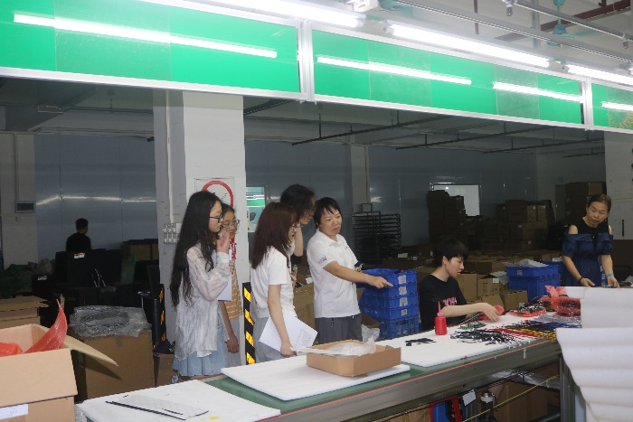 在完成深度訪談后,實踐團成員隨即深入合作企業(yè)生產(chǎn)一線,開展實地觀察。在廣州市奮威音響器材有限公司等制造企業(yè)的智能化車間內(nèi),成員們近距離觀摩技術工人的操作流程,聽取車間負責人的專業(yè)講解及一線員工的工作感悟,深切體認到高新技術產(chǎn)業(yè)對復合型技能人才能力要求的持續(xù)提升;在電商服務類企業(yè)調(diào)研中,團隊成員發(fā)現(xiàn),精準的行業(yè)洞察力與高效協(xié)作能力成為關鍵競爭要素;在信息技術類企業(yè),團隊成員則深刻感受到新興行業(yè)日新月異的現(xiàn)狀對員工創(chuàng)新思維與專業(yè)素養(yǎng)的高度重視。