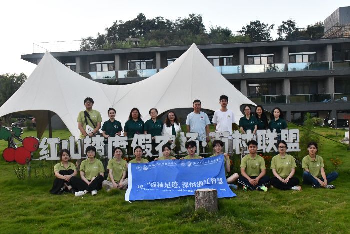 政策賦能讓余村的共富藍圖愈發(fā)清晰。天荒坪鎮(zhèn)黨委委員俞丹向實踐團講述了余村二十年蝶變:2024年,余村依托生態(tài)資源,接待游客120萬人次,旅游收入突破6000萬元,“兩山”理念落地生花;憑借青年人才政策,培育新興業(yè)態(tài),為鄉(xiāng)村添活力。未來,余村將以“1+1+4”規(guī)劃為綱、“五統(tǒng)四分”模式為要,聯(lián)動周邊24村共創(chuàng)國家級旅游度假區(qū),共赴共富新程。