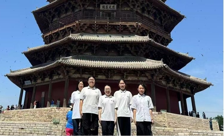參觀完畢后實踐團站在塔下合影,陽光穿過斗拱的縫隙在地面織出斑駁的網,仿佛千年前工匠的手印仍留在那些木痕里。了解了應縣木塔的精巧技藝與歷史淵源后,實踐團成員心中不僅裝著對名勝的好奇,更多了對中國古代匠人的崇敬和中華優(yōu)秀非遺技藝的自豪。