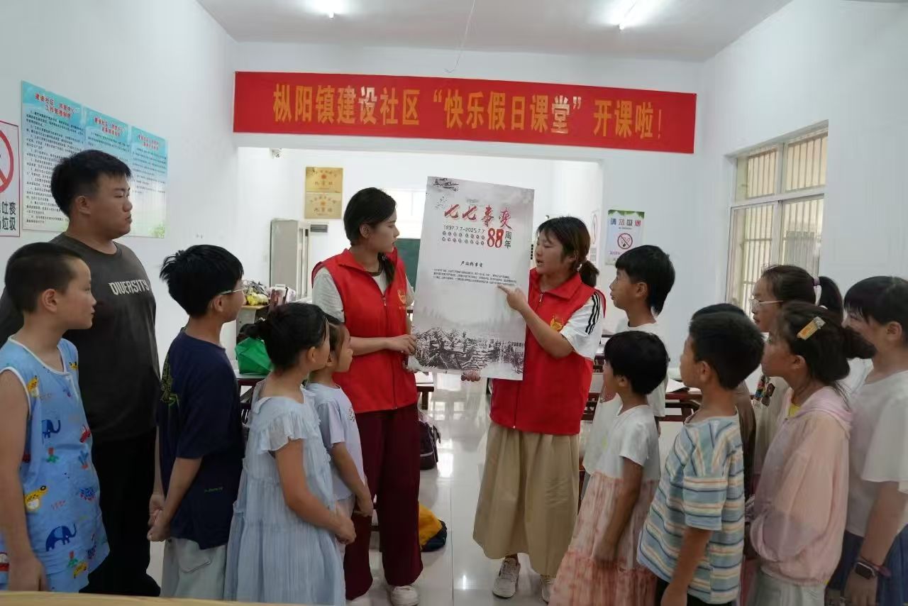 圖為志愿者在課堂上為小朋友們科普“七七事變”。錢靜茹 攝
