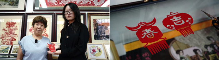 三、楊柳青剪紙:巧剪紙上韻味,傳承譜寫新章 楊柳青剪紙五代傳承人郝桂芬,以剪刀為筆,繪就了傳承的長卷。她的技藝源于家族傳承,從傳統的純色剪紙起步,改革開放后創新出彩色暈染技法,借鑒楊柳青年畫的技藝讓作品更顯生動。家族傳承的火種在郝老師的女兒、外孫女那里延續,然而,年輕人深入學習的較少,年輕傳承人稀缺,傳承面臨著挑戰。